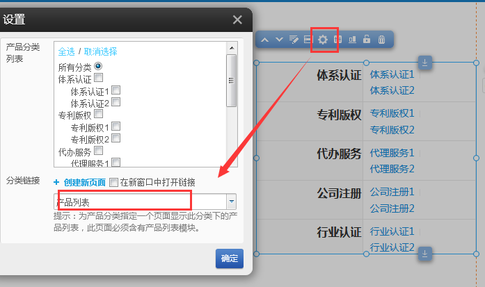原因是產(chǎn)品分類插件沒有設(shè)置鏈接頁(yè)面點(diǎn)擊設(shè)置分類鏈接即可如果下拉沒有頁(yè)面可選擇則頁(yè)面管理-》創(chuàng)建新頁(yè)面-》標(biāo)題寫產(chǎn)品列表模板-》底板選擇common或您自已建的-》保存。然后在側(cè)插件中心拖拽產(chǎn)品插件-》選擇列表并保存如果是文章分類則頁(yè)面管理-》創(chuàng)建新頁(yè)面-》標(biāo)題寫文章列表模板-》底板選擇common或您自已建的-》保存。然后在側(cè)插件中心拖拽文章插件-》選擇列表并保存然后再回到分類模塊設(shè)置即可