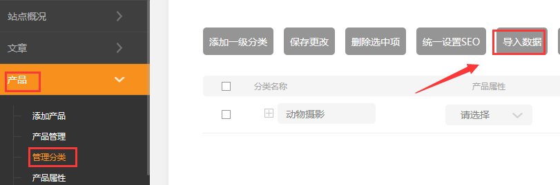 如何批量導(dǎo)入分類(支持版本基礎(chǔ)版、標(biāo)準(zhǔn)版、營(yíng)銷版)文章分類的操作方法也類似在網(wǎng)站后臺(tái)產(chǎn)品-》管理分類-》選擇導(dǎo)入數(shù)據(jù)然后下載模板編輯內(nèi)容如下圖所示如果是頂級(jí)分類則parentprodcutname項(xiàng)目不填第3項(xiàng)的數(shù)字任意填寫第四項(xiàng)填0即可子分類填寫邏輯prodcutname項(xiàng)填寫分類名稱parentprodcutname項(xiàng)填寫上級(jí)分類的名稱C列也就是第三例填寫當(dāng)前分類id數(shù)值(注:數(shù)字任意填寫不和其它重復(fù)即可)D列第4列填寫上級(jí)分類的id數(shù)值即可