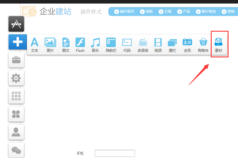 1.在建站前臺,“添加-》選擇“素材”模塊。目前僅支持圖文展示,此功能預設了兩種風格的編排,用戶可以預覽或者直接添加到建站中,再具體調整其中的每一個模塊。