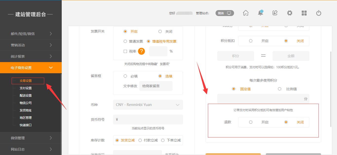 需營銷版本及以上在后臺,“電子商務設置”-“交易設置”中,有一個退款的操作,當開啟該操作時,在前臺用戶頁面可以直接申請退款,后臺消息提醒中也會有相應的提示,點擊“查看”即可(注:“退款”默認為關閉狀態(tài)),如圖所示:在線支付的訂單才能退款2.手機版與PC版操作一致,這里不做贅述。已收貨的訂單也可以申請退款點擊查看進入訂單詳情即可看到退款按鈕。如圖所示:1.支付后點擊退款余額和積分是否退回支付后,后臺點擊退款,余額和積分和優(yōu)惠劵是退回的。2020.11.12營銷版本(包含小程序)支持訂單退款新增微信原路退回功能1.在