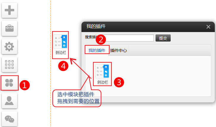 插件-側(cè)邊欄(適用版本pc基礎(chǔ)版、標(biāo)準(zhǔn)版、營銷版)側(cè)邊欄內(nèi)容支持主頁、會員、客服、幫助、留言、微博、二維碼顯示在網(wǎng)站左側(cè)或右側(cè)。支持設(shè)置側(cè)邊欄主色調(diào)和懸停色使用方法:進(jìn)入網(wǎng)站編輯-〉點(diǎn)左側(cè)插件圖標(biāo)-〉插件中心,找到"側(cè)邊欄"插件圖標(biāo),點(diǎn)啟用然后在我的插件-》選中插件-》拖拽到您需要的位置二、點(diǎn)擊設(shè)置-》設(shè)置側(cè)邊欄顯示位置、內(nèi)容、色調(diào)等。側(cè)邊欄客服支持自定義如下圖側(cè)邊欄客服添加有限制嗎?答:沒有但不建議超過8個,否則一屏顯示不完。二維碼欄位在建站前臺拖出“側(cè)邊欄”插件,點(diǎn)擊設(shè)置-二維碼,現(xiàn)在支持設(shè)置三