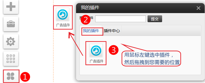 PC版+手機(jī)插件(適用版本基礎(chǔ)版、標(biāo)準(zhǔn)版、營銷版)廣告插件可有效吸引訪客眼球,傳遞網(wǎng)站的重要信息(促銷活動,主打產(chǎn)品,節(jié)日問候等)支持右下角彈出,頁面漂浮,對聯(lián)3種廣告類型,支持設(shè)置鏈接.每種廣告類型系統(tǒng)提供12種素材供用戶選擇,同時支持客戶自定義廣告背景圖片.1、依次點(diǎn)擊插件-我的插件-選中“廣告插件”插件拖拽到您需要的位置。(如果“我的插件”中沒有,請到插件中心選啟用)2、點(diǎn)擊設(shè)置,選擇需要的廣告類型,錄入廣告文本并設(shè)置廣告的鏈接和主題??梢栽趯β?lián)廣告中控制左右聯(lián)顯示。如果需要單側(cè)顯示,在不需要顯示的一