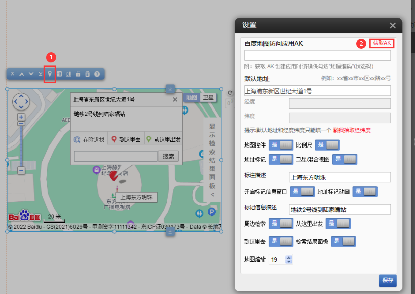 1.在百度地圖插件中點(diǎn)擊“設(shè)置”在彈出窗口中點(diǎn)擊“獲取AK”也可以直接開https://lbsyun.baidu.com/apiconsole/key?application=key#/home獲取百度地圖訪問AK2.登陸后,點(diǎn)擊創(chuàng)建應(yīng)用注意:應(yīng)用類型選“瀏覽器端”,Referer白名單*.mysite.com*,*mysite.com*,*.onlinewebsite.cn*,*.ysjianzhan.cn*其中mysite.com需要替換為您的域名。注意:如果Referer沒填*需要填寫自己的域名格式如下*.mysite.com*,*mysite.com*,*.onlinewebsite.cn*,*.ysjianzhan.cn*其中mysite.com需要替換為您的域名。如果提示格式錯誤,請檢查分隔符是否為英文