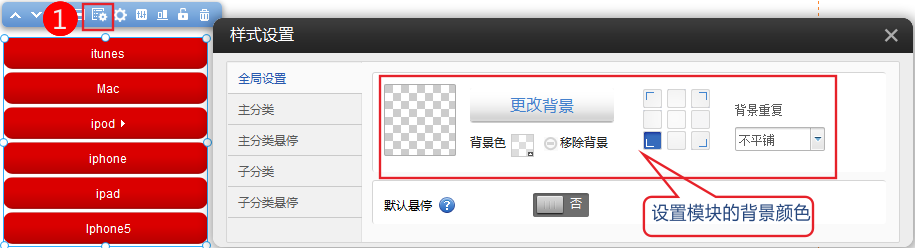 這里您可以對主菜單及下拉菜單的樣式進行全方位的調(diào)整與設置,屬于產(chǎn)品分類導航的進階應用功能.具體的功能操作大家可以在實踐中熟悉和體會,我們把幾個概念在下面解釋一下: 全局設置:整個產(chǎn)品分類導航欄的整體部分,這個將在最底層,效果不明顯,因為會被其他層面遮擋。 主菜單:即產(chǎn)品分類導航欄菜單的頂級菜單。 主菜單懸停:即當鼠標放在產(chǎn)品分類導航導航欄上時,導航欄上的的變化設置。 子菜單:即主菜單下的下拉子菜單(子頁面)。 子菜單懸停:即當鼠標放在子菜單上時,子菜單的變化設置。 子菜單和子菜單懸停和主分