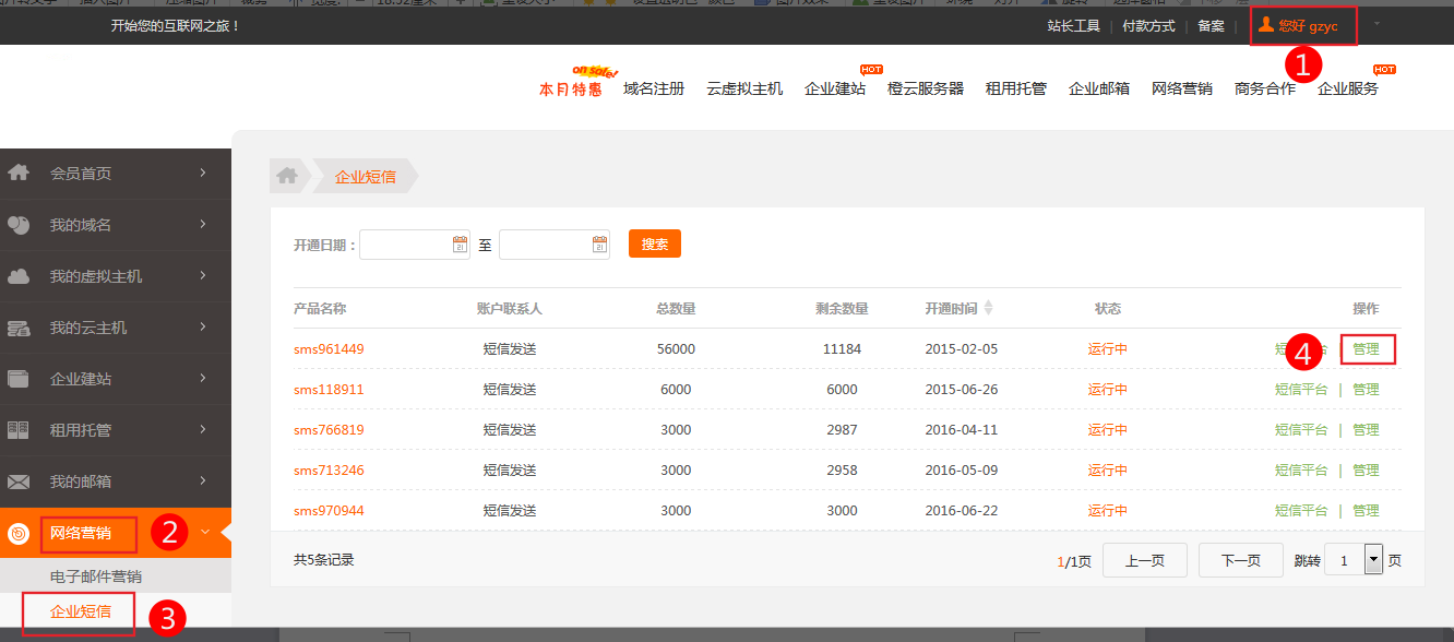 短信發(fā)送需購買短信業(yè)務方可使用注意:短信發(fā)送僅支持我司短信接口,不支持其它第三方購買的短信接口短息提供商規(guī)定一個手機號碼一小時最多發(fā)送5條短信模板是不可編輯的,客戶不能自定義編輯短信內(nèi)容如果使用注冊認證請在會員管理中關閉驗證碼功能,否則會要求錄入兩次驗證碼。1.依次點擊網(wǎng)絡營銷--》企業(yè)短信-》管理-》查看登陸密碼。2.然后點擊短信平臺3.點擊接口觸發(fā)獲取到管理名稱和key值4.回到網(wǎng)站管理后臺點擊郵件/短信-》短信發(fā)送設置-》錄入之前獲取的管理名稱、key值、密碼和簽名5.簽名展示效果(注意簽名必填并且要在8字符以內(nèi)
