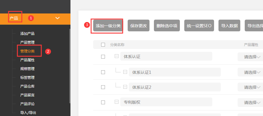 小節(jié)共包含5點。1、看完本節(jié)內(nèi)容您應(yīng)該知道:添加產(chǎn)品分類往往是第一步的,一個商品必須添加在一個分類下添加分類以后,您可以對分類的順序進(jìn)行調(diào)整,讓您認(rèn)為重要的分類顯示在前面。添加分類以后,您可以通過編輯這個分類來調(diào)整這個分類的層級關(guān)系2、添加分類1.依次點擊產(chǎn)品->產(chǎn)品分類->添加一級分類錄入分類名稱,并保存2.如果需要在頂級分類下添加子分類,直接點擊添加子分類即可。如果還有添加頂級分類點擊添加一級分類即可添加完完畢以后點擊保存更改,可以在分類列表中看到它添加完完畢以后,可以在分類列表中看到它3、調(diào)整分