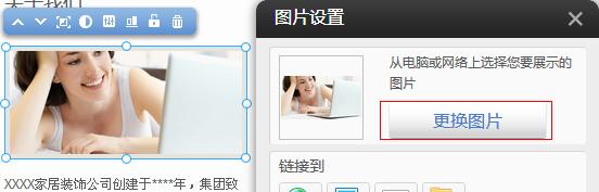 點擊“更換圖片”, 系統(tǒng)會彈出圖片文件管理器, 然后選擇新的圖片進(jìn)行替換即可,步驟與上面提及的“添加新的圖片模塊”是一致的。