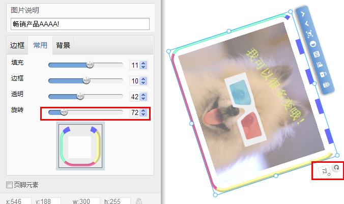 旋轉(zhuǎn):圖片相對于頁面的角度,可以為0-359°。