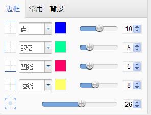 邊框:我們可以看到“邊框”數(shù)值是10,事實上,只要我們不在這個位置做調(diào)整,系統(tǒng)會默認(rèn)剛才在“邊框”頁面所做的設(shè)置。但如果要統(tǒng)一四條邊線的磅數(shù),可以直接在這里對4條邊一起調(diào)整;