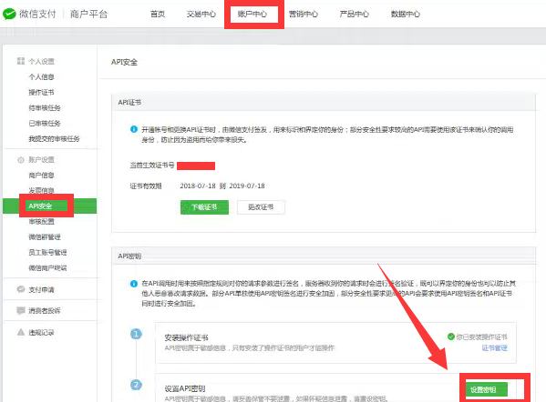 登陸商戶平臺-》帳戶中心-》帳戶設(shè)置-》api安全-》設(shè)置32位密鑰