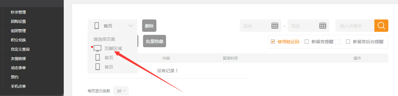 然后在留言字段設(shè)置中開啟即可