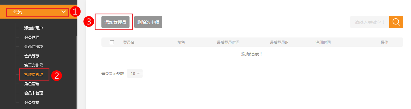 依次點擊會員->管理員管理->添加管理員