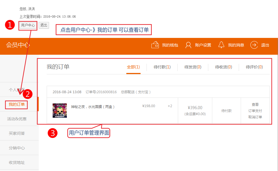 提示:前臺會員中心,訂單的狀態(tài)會隨后臺訂單狀態(tài)的改變而變化,會員可以即時(shí)看到訂單處理情況!