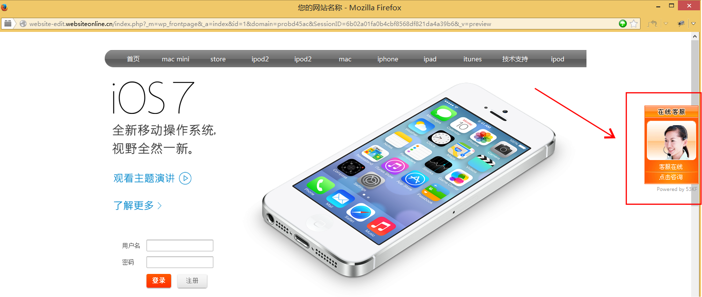 1.依次點(diǎn)擊 插件-》在線客服-》53快服 把插件拖拽到需要的位置