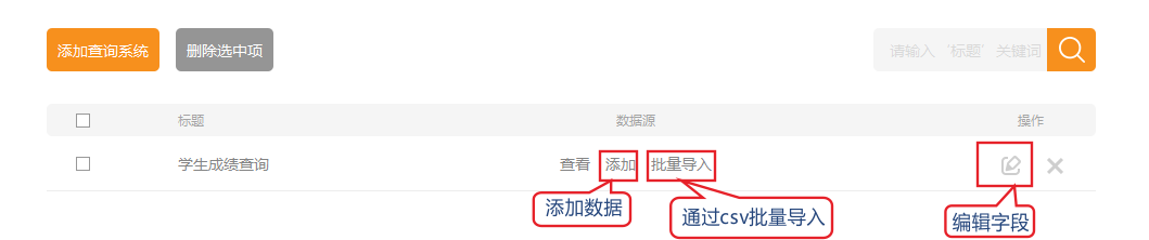 添加后可以可以在列表中看到,然后點(diǎn)擊添加錄入數(shù)據(jù),或通過(guò)csv批量導(dǎo)入