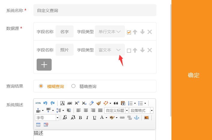 1. 添加新字段 ,字段類型選擇多條件查詢