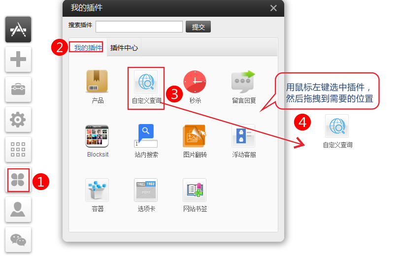 先在網(wǎng)站編輯界面 插件中心拖拽 自定義插件到頁(yè)面中
