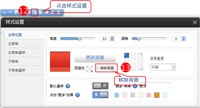 5.設(shè)置主菜單、主菜單懸停樣式。