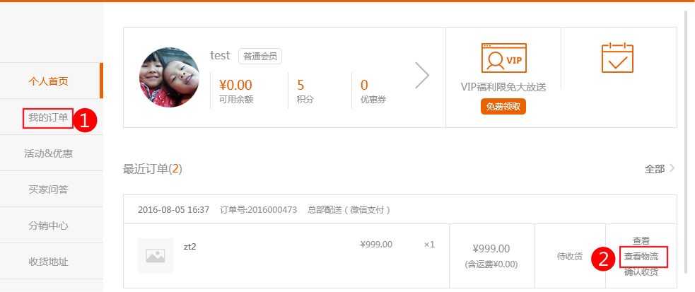 9、用戶在用戶中心-》我的訂單 -》查看物流中可以查詢到物流信息