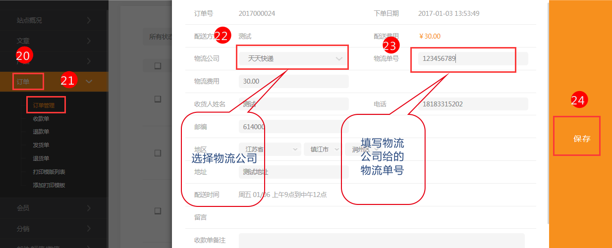 8.選擇好物流公司,填寫物流公司給的準(zhǔn)確的物流單號。