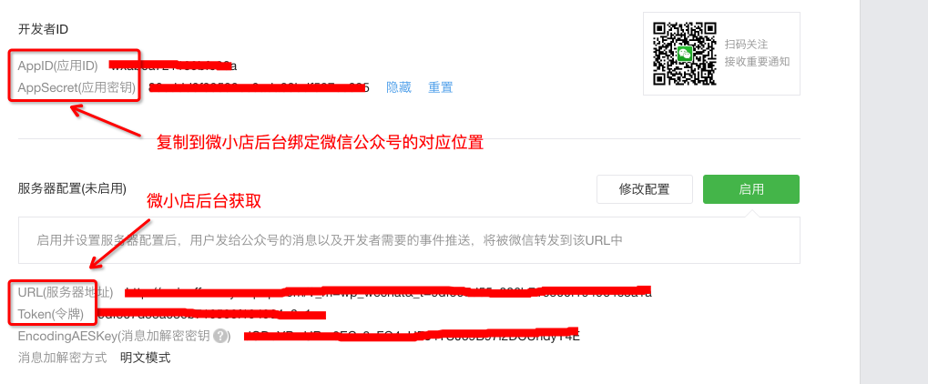 注意:要先在微小店中保存微信公眾號,才可以在微信公眾平臺中提交服務器配置修改,否則會失敗。(測試公眾號也可能會失敗,推薦采用正式的微信公眾號)。