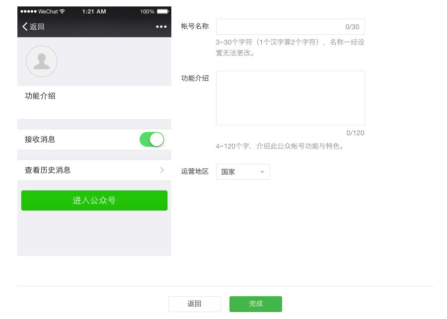 (5)填寫公眾號信息