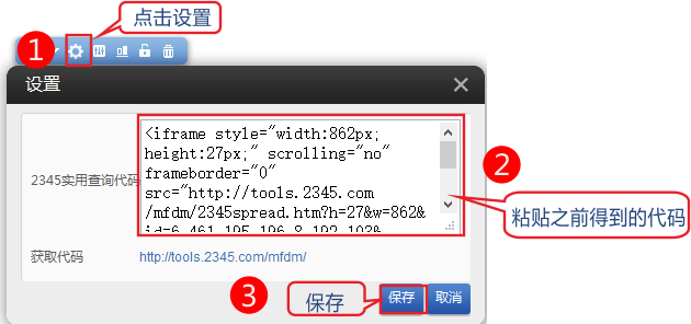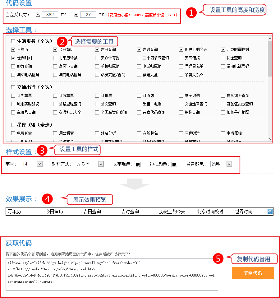 1、 打開 http://tools.2345.com/mfdm/ 選擇需要的工具并獲取代碼