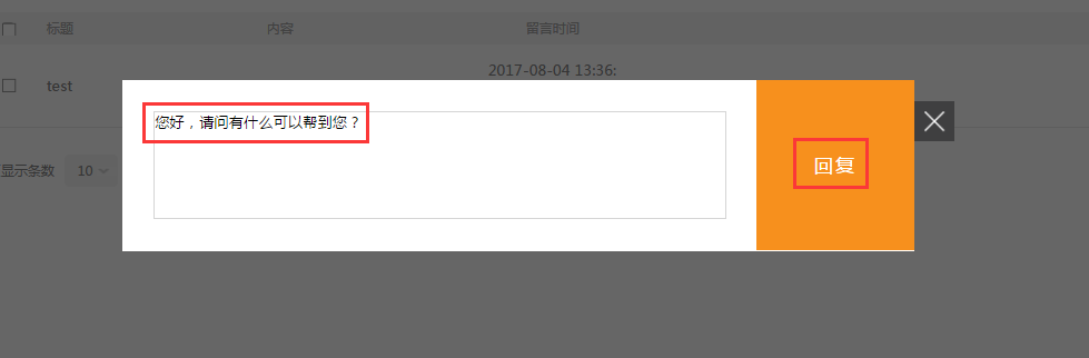 5,輸入留言回復(fù)的內(nèi)容,并點(diǎn)擊【回復(fù)】按鈕。