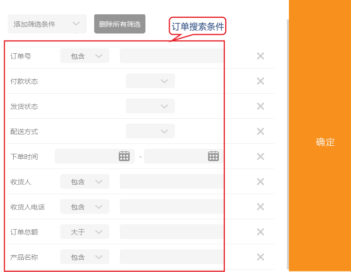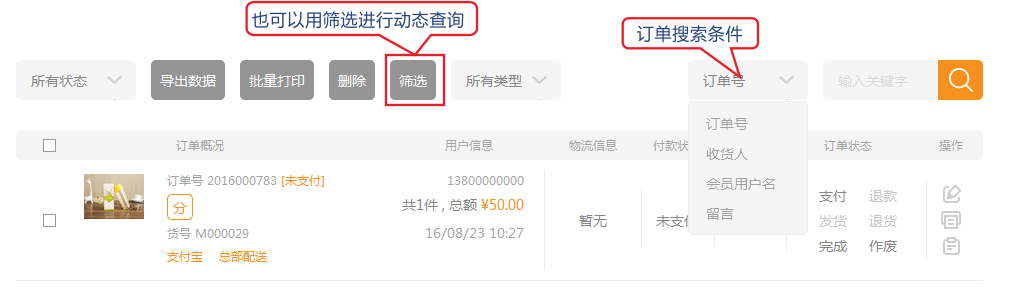 在對(duì)訂單搜索時(shí),可以根據(jù)多個(gè)條件進(jìn)行查詢