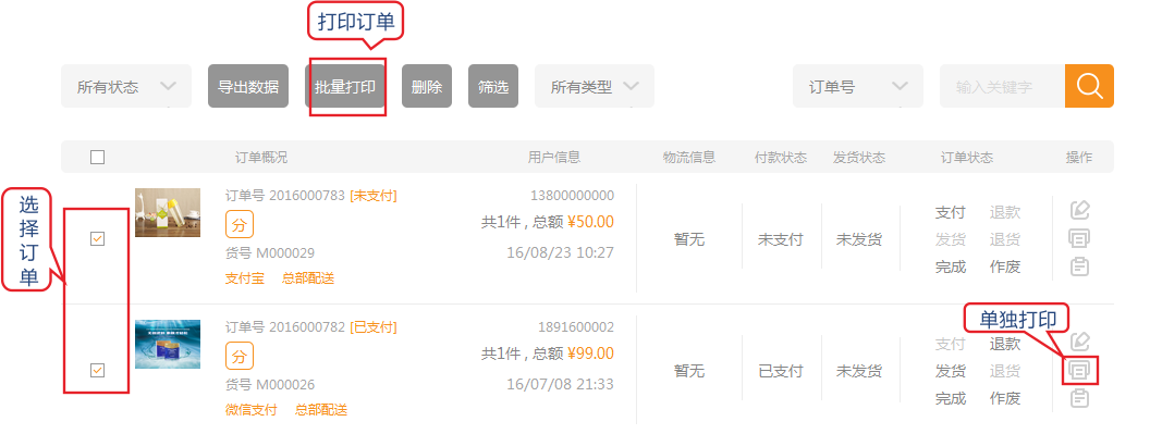 如果想用紙張的形式來表現(xiàn)訂單,也可打印訂單