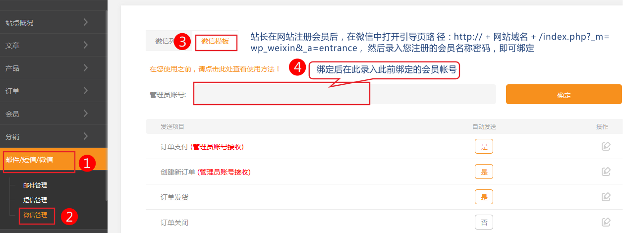 2:在網(wǎng)站后臺微信模板設(shè)置中編輯、并查看對應(yīng)的模板編號