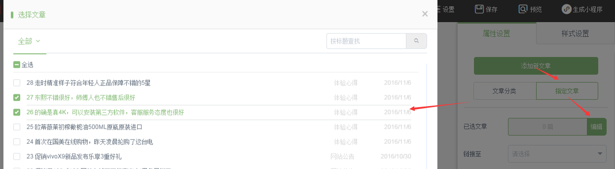 點擊指定文章-編輯可以指定顯示某些文章