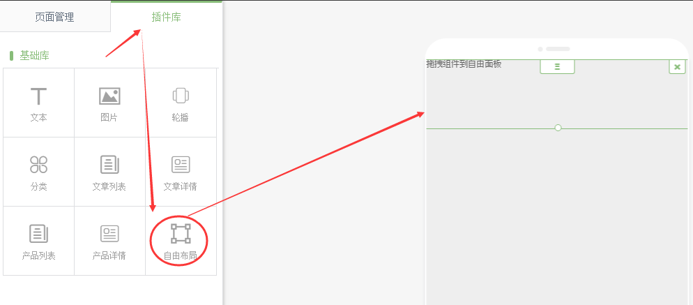 插件庫中,將自由布局拖拽到頁面中