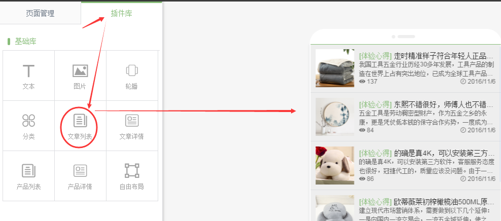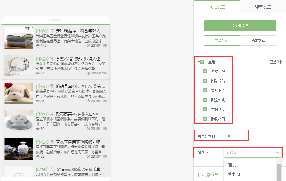 注意:文章列表只能鏈接到文章詳情插件所在的頁面。