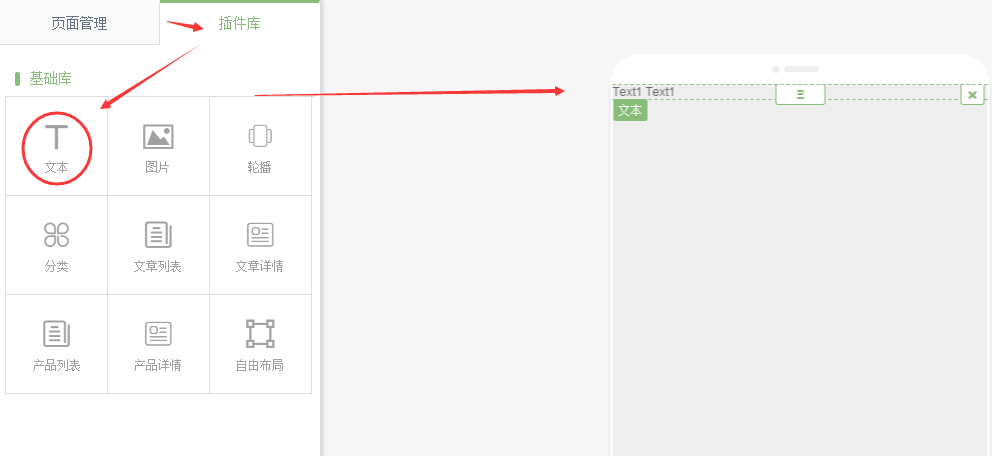 插件庫中,將文本拖拽到頁面中