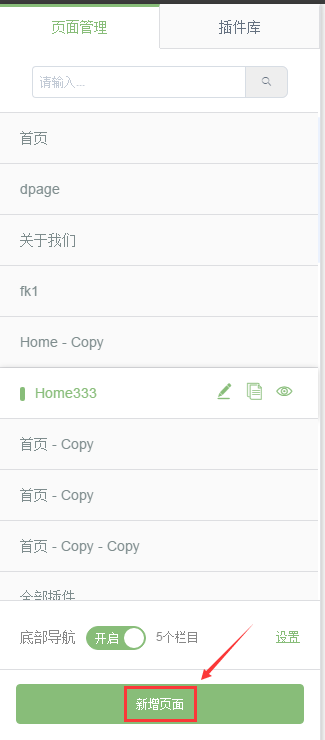 可以在新頁面中添加插件庫里的插件。