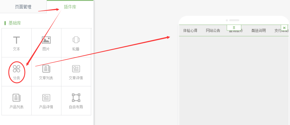 插件庫中,將分類拖拽到頁面中