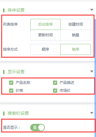 雙擊產(chǎn)品列表模塊,可以勾選產(chǎn)品分類,沒有勾選的分類的產(chǎn)品就不會顯示。