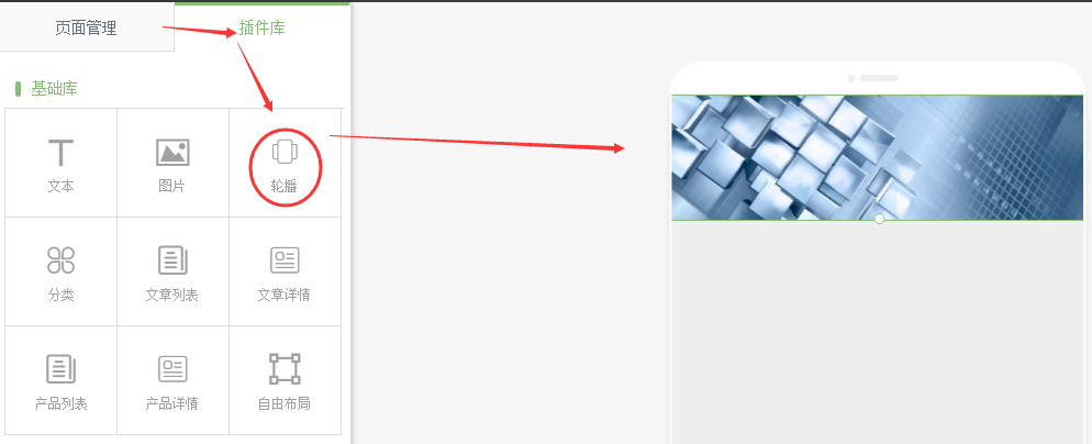 插件庫中,將輪播拖拽到頁面中