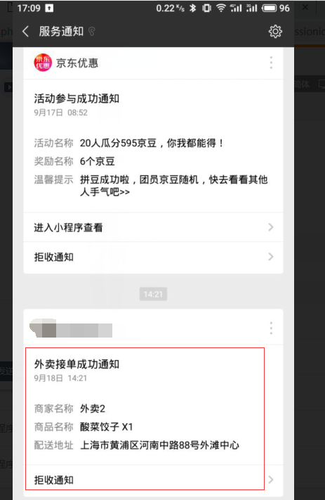 二.小程序新增外賣接單成功通知模板(營銷版)