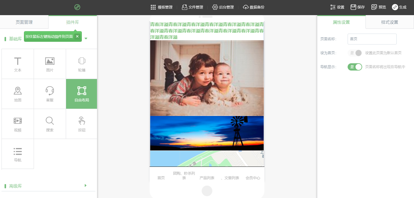 4.在小程序編輯器中,拖入插件后,點(diǎn)擊生成,選擇“百度小程序”下載代碼(注:在編輯器中布局頁(yè)面時(shí)注意“地圖”、“視頻”、“web頁(yè)面”為原生組件因此會(huì)對(duì)其他插件有覆蓋的情況?。?,在百度小程序開(kāi)發(fā)者工具中選擇“打開(kāi)”文件夾即可,如圖所示: