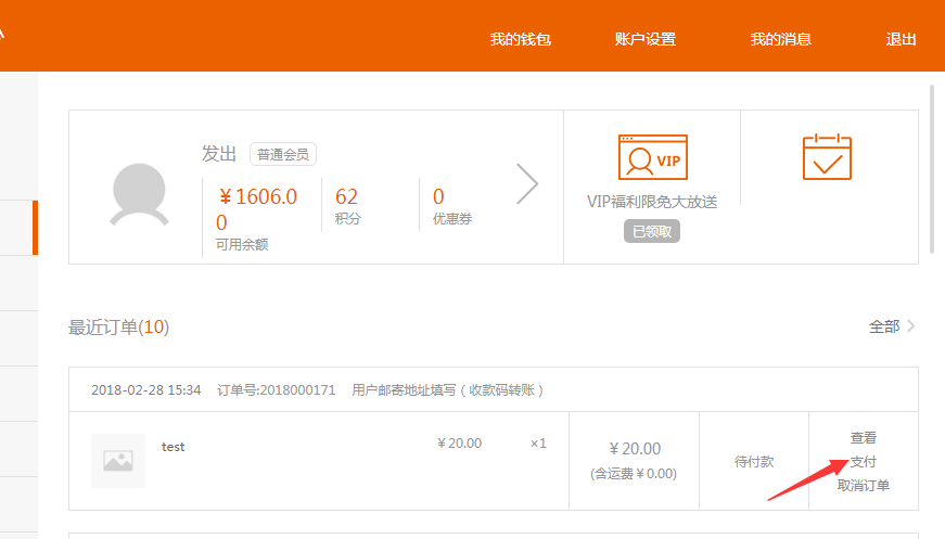 ④.如果還未付款就不小心關(guān)了上述頁(yè)面,可以在訂單中心里點(diǎn)擊支付查看收款信息
