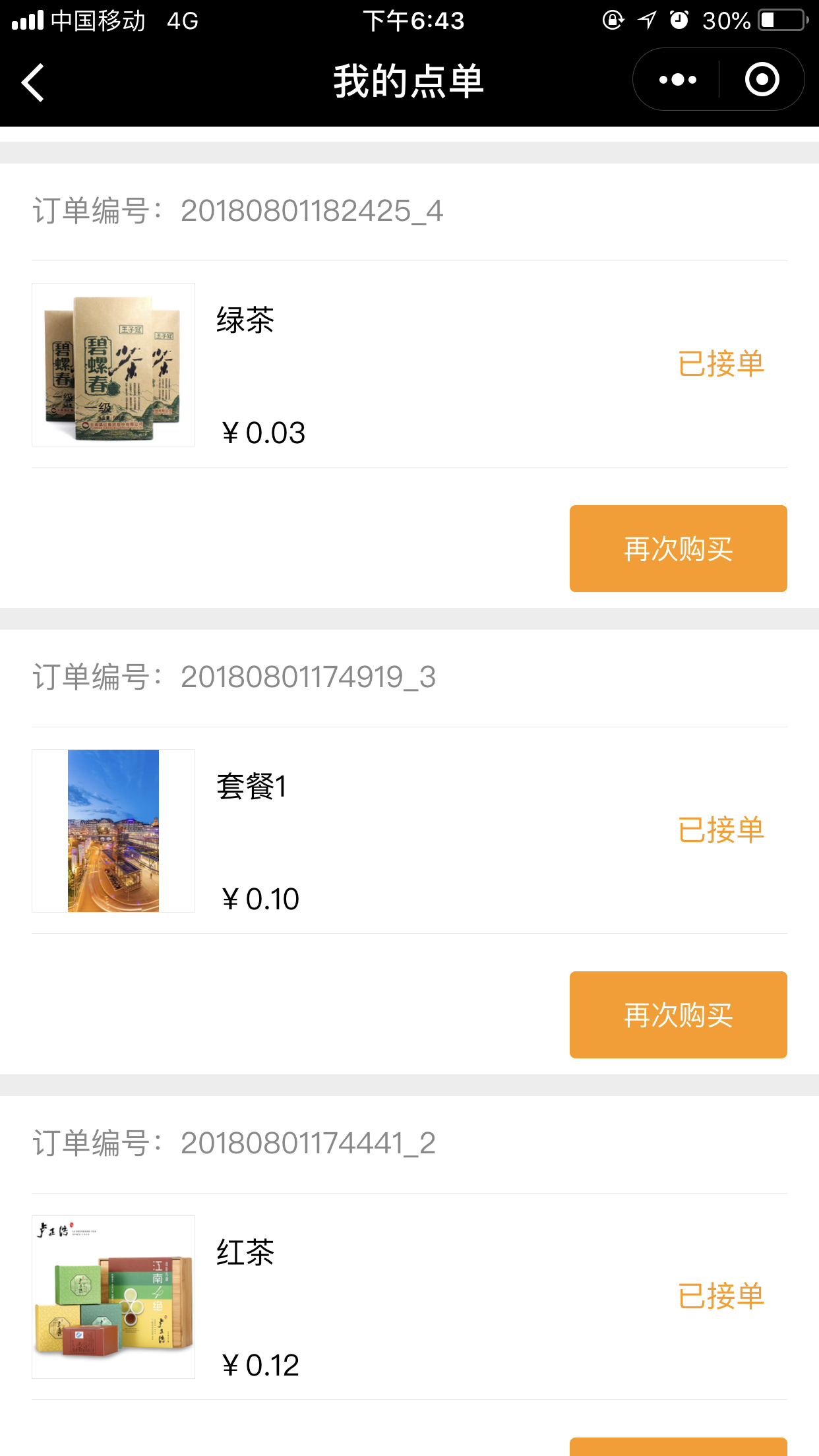 5.在“會員中心”中—“手機(jī)點(diǎn)單”中可以看到所有的訂單詳情,如圖所示: