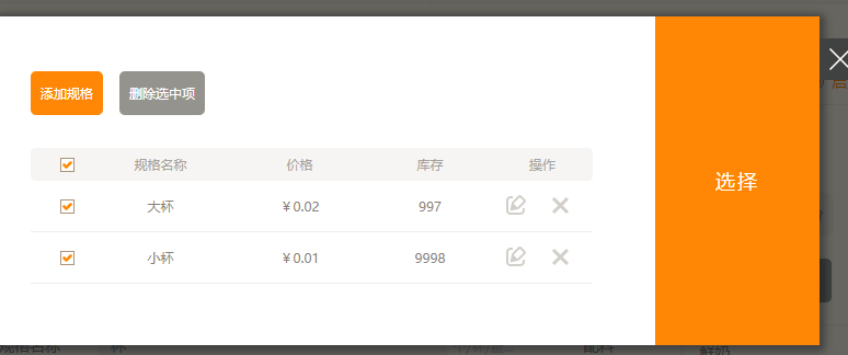 在建站后臺,“小程序應(yīng)用”-“外賣點(diǎn)單”,編輯商品啟用規(guī)格時(shí),庫存變成可填寫字段,不同商品使用統(tǒng)一規(guī)格時(shí)不會再共享同一個(gè)庫存值。如圖所示: