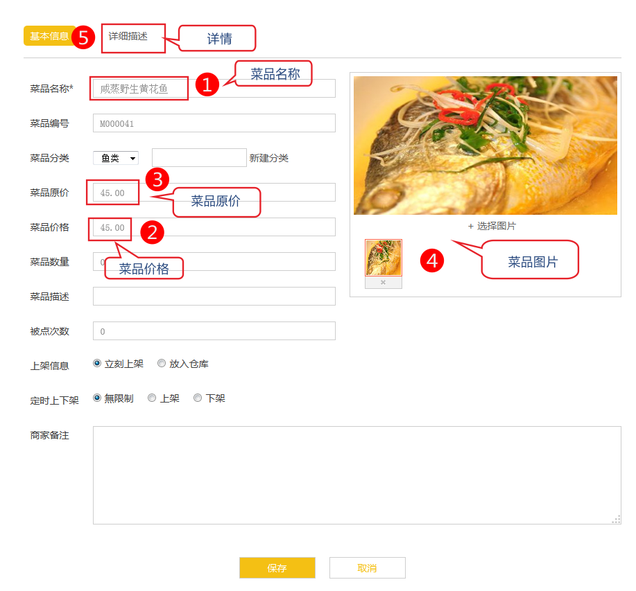 產(chǎn)品編號:添加菜品編號,可能會更好讓你管理你的菜品,特別是當您的菜品已經(jīng)很多的時候。