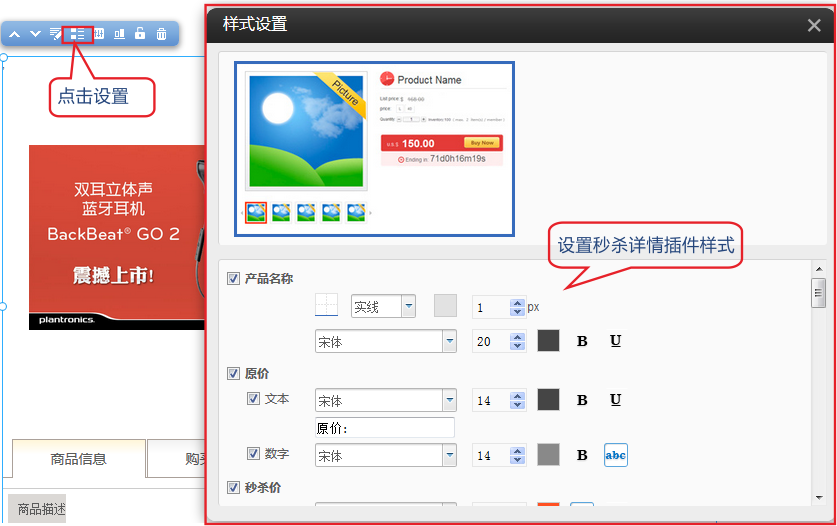 可以設(shè)置秒殺詳情展示的樣式.