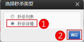 選擇“秒殺詳情”后,系統(tǒng)提示需要與秒殺列表配合使用,點擊“確定”:
