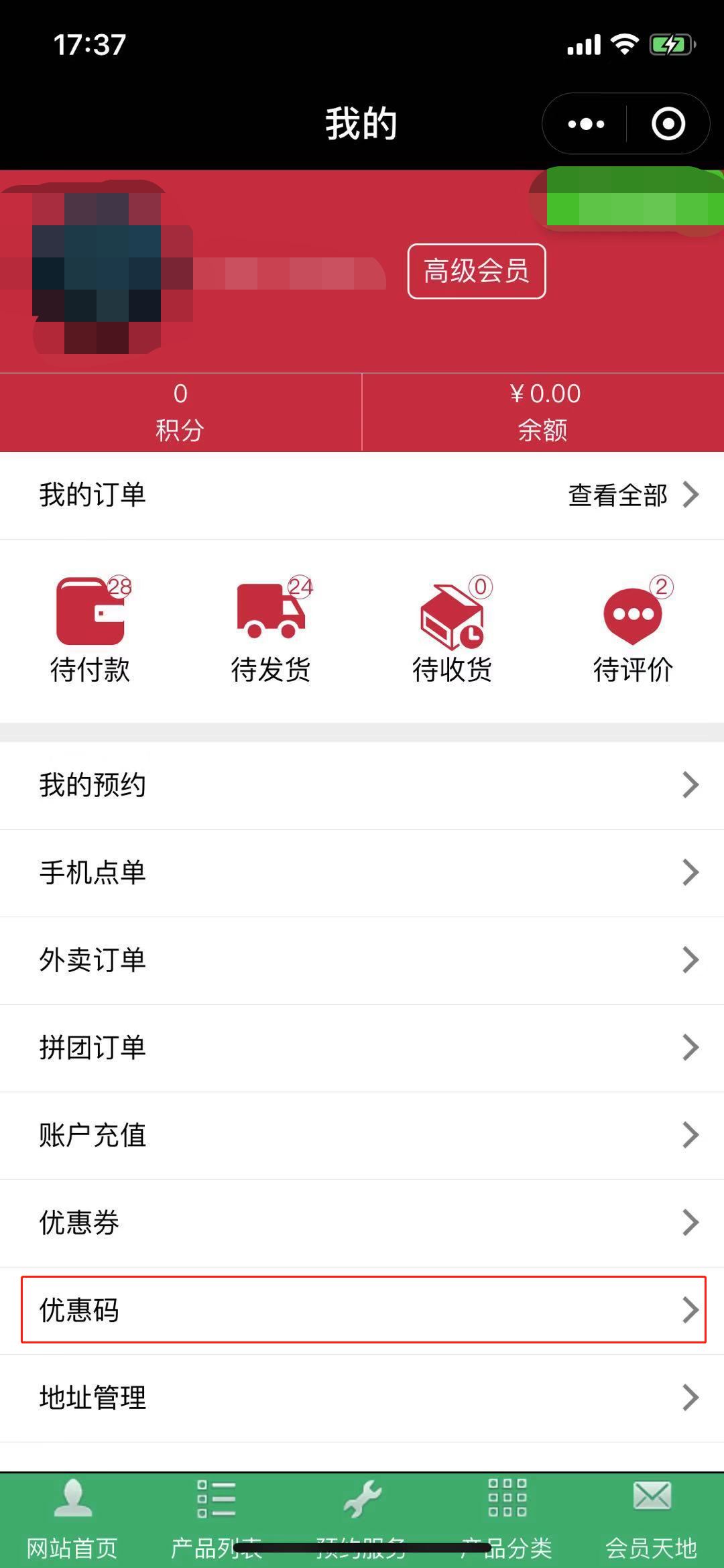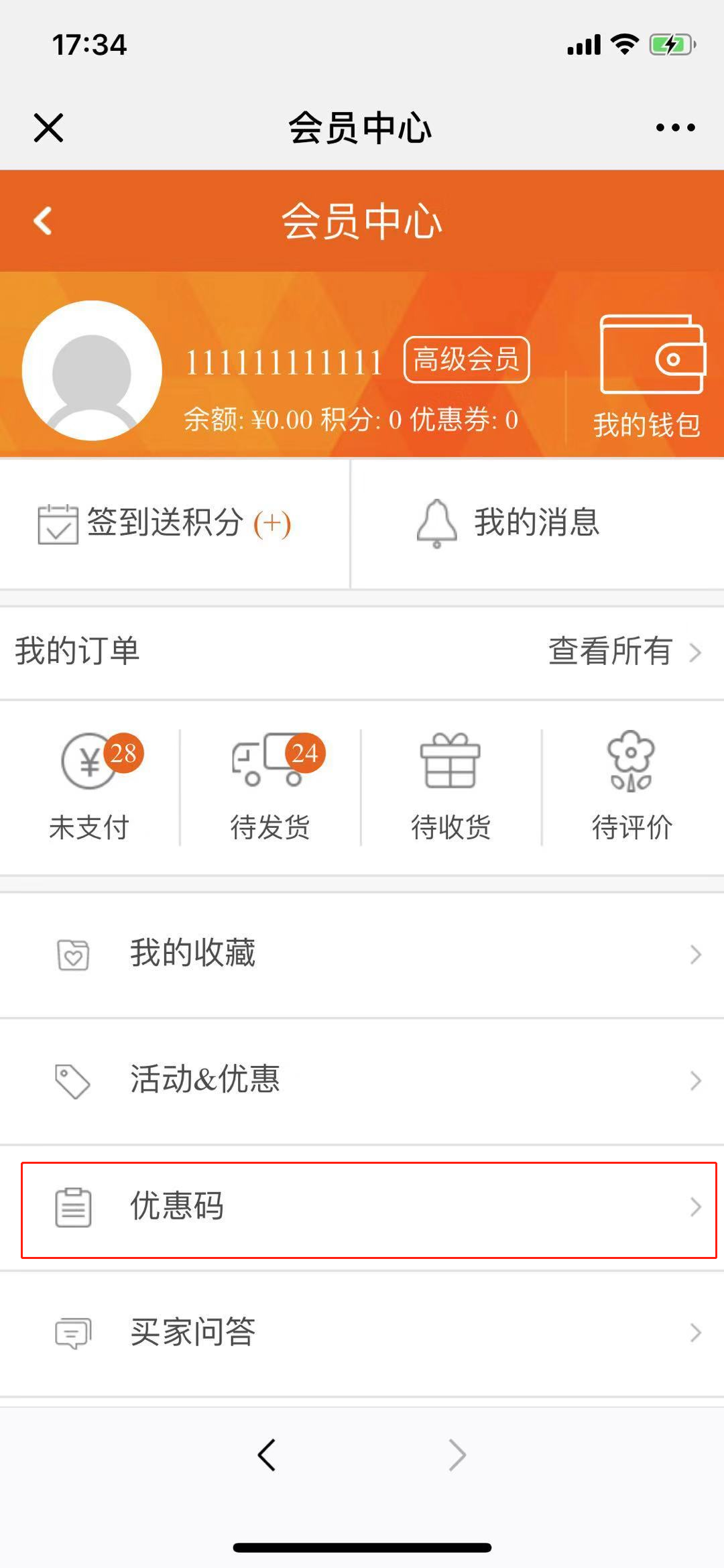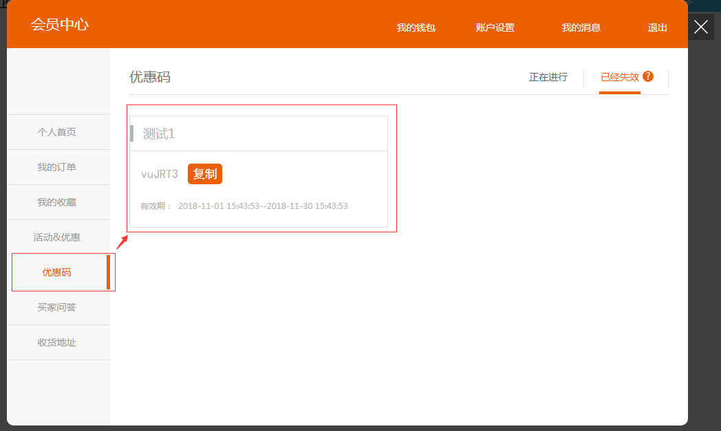 3.Pc端可在個(gè)人中心查看優(yōu)惠碼,如圖所示: