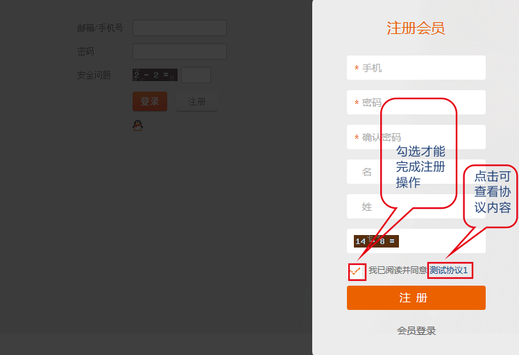 使用注冊協(xié)議,會員在注冊界面必須勾選注冊協(xié)議,方可注冊成功。(協(xié)議建議文字在1萬以內(nèi))