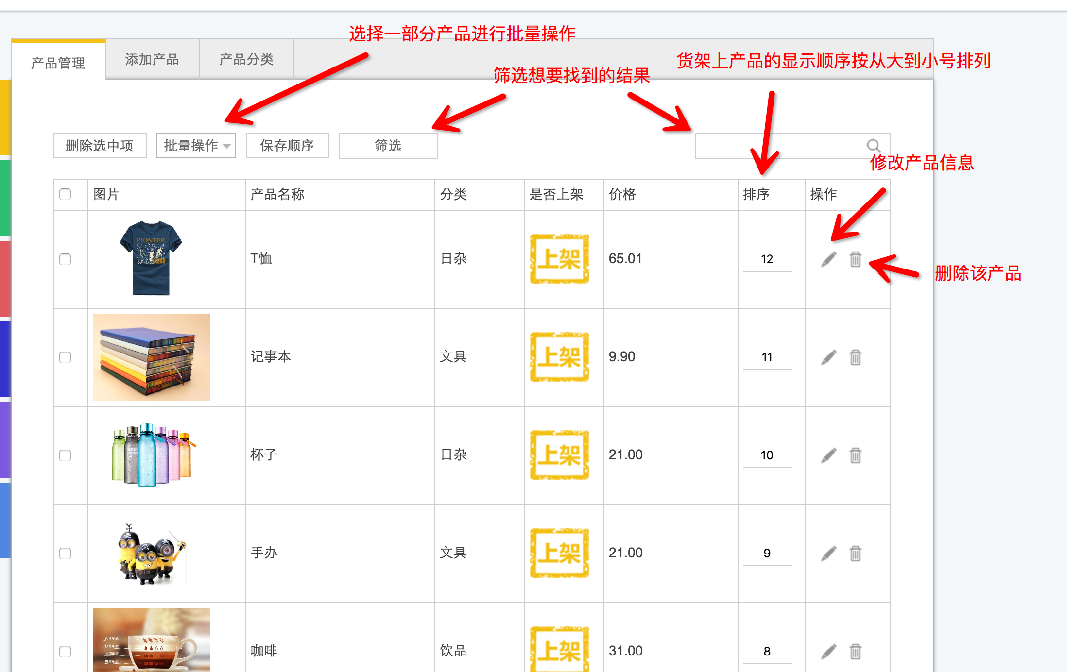 注意:篩選條件包括分類,名稱,產(chǎn)品價(jià)格,產(chǎn)品原價(jià)